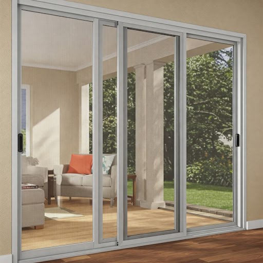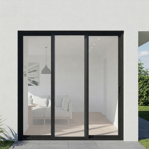 All doors use the same heavy-gauge extruded aluminum frame with steel ball-bearing wheels and integrated latch lock.